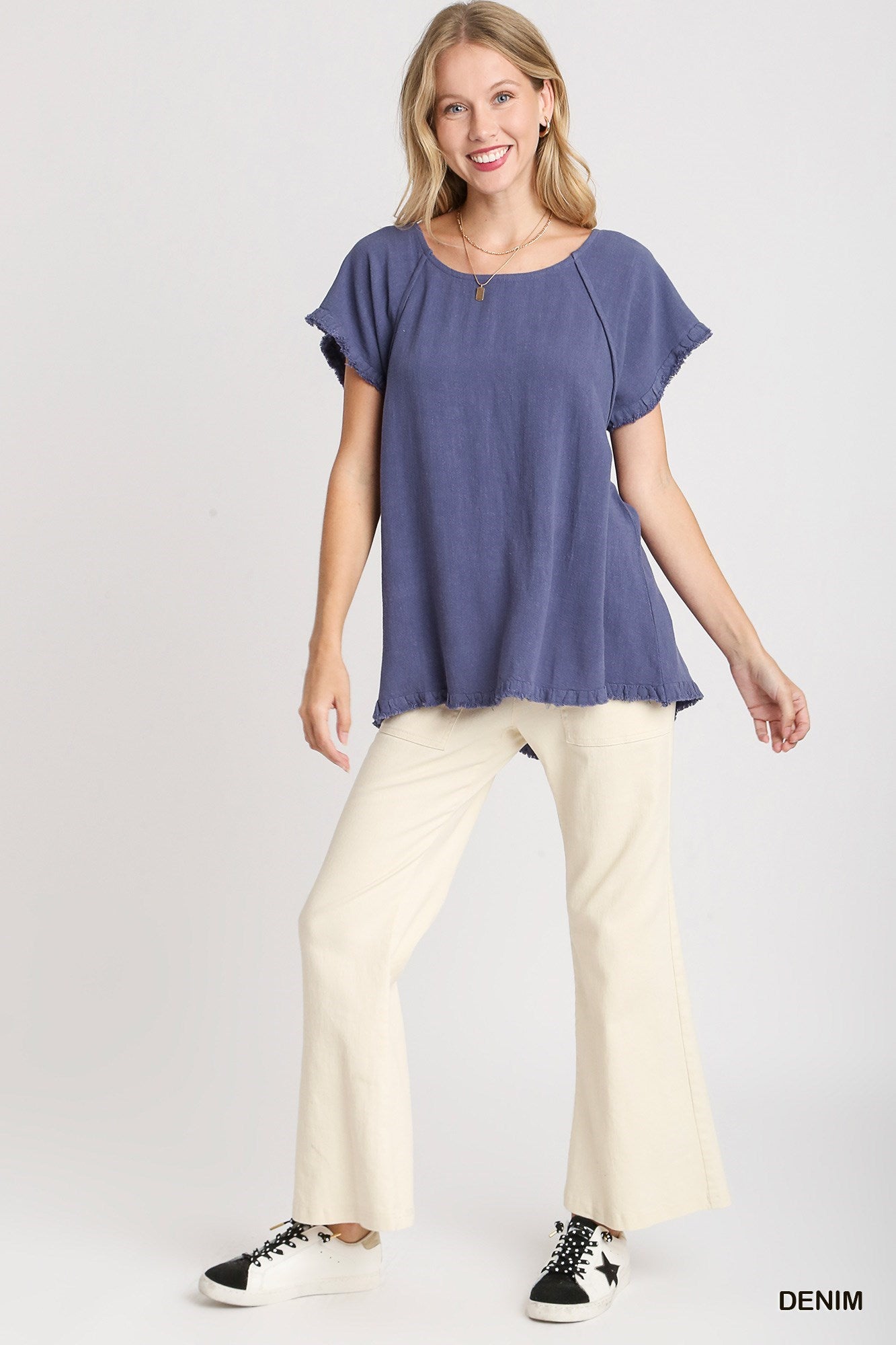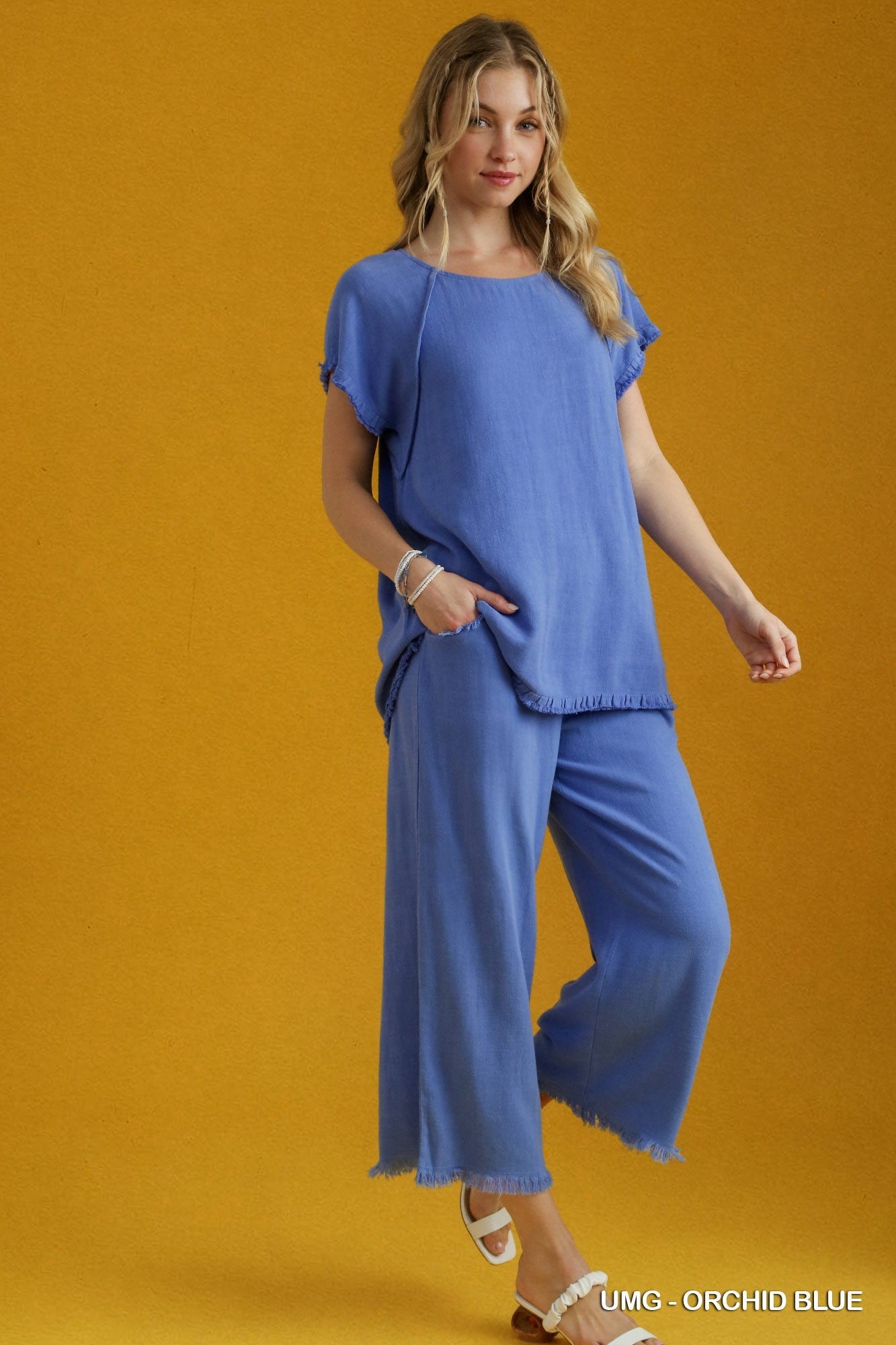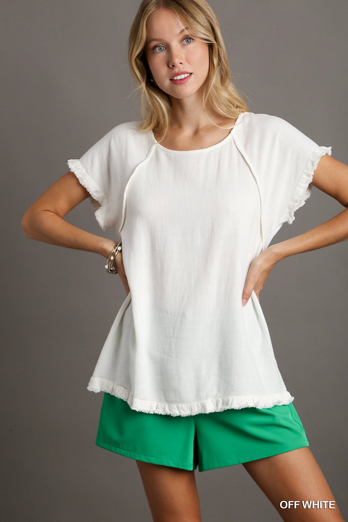 Looking for a soft, summery top? Look no further than our Bri Shirt! Made from luxurious linen, it features cute seam and ruffle fray details. Perfect for staying cool and stylish this season.