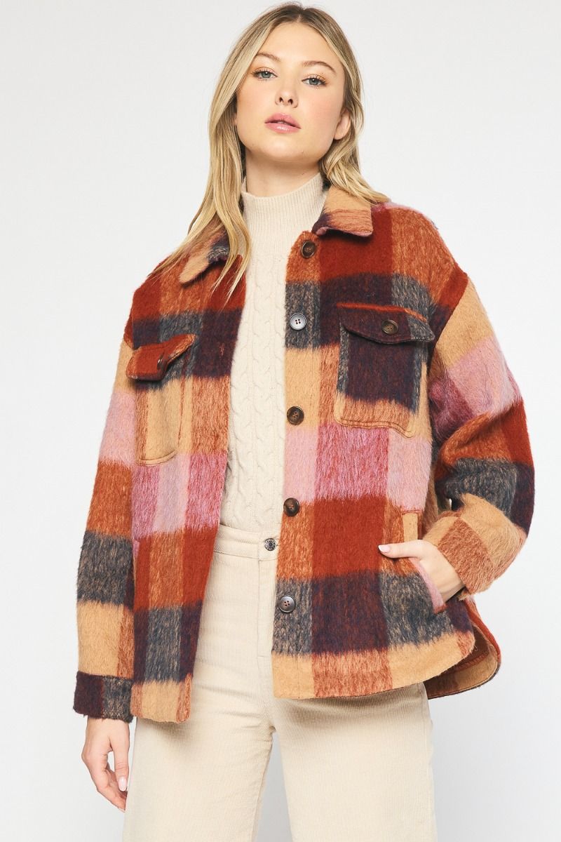 Expertly crafted from high-quality felted gingham, the Gabby Shacket is a versatile and durable addition to your wardrobe. With a classic collared design and convenient button-up closure, this medium-weight garment offers both style and functionality. Perfect for any occasion, it's the perfect balance of comfort and sophistication.